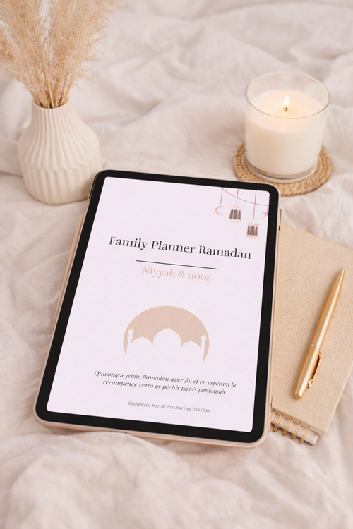 Un planner digital conçu pour accompagner les familles musulmanes dans un Ramadan plus organisé, apaisé et centré sur l'essentiel.